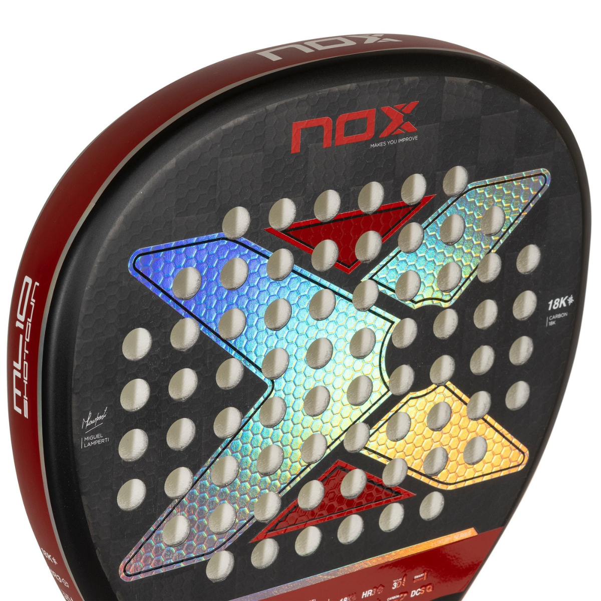 - Material de las caras: El carbono 18K también se utiliza en las caras de la pala, lo que contribuye a la potencia y la respuesta. La combinación de materiales garantiza un equilibrio óptimo entre control y potencia.