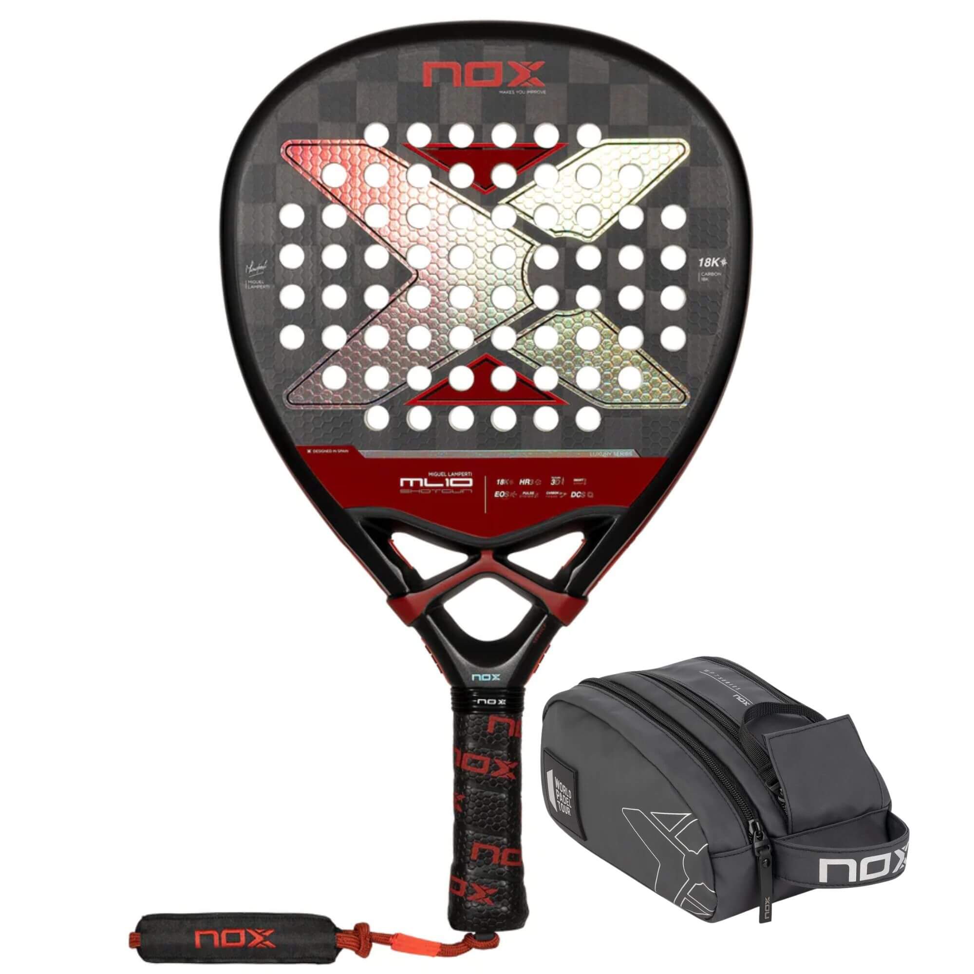 La Nox ML10 Luxury Shotgun 18K 2024 es una pala de pádel de alta gama diseñada en colaboración con el legendario jugador Miguel Lamperti. Su forma de diamante y su balance hacia la cabeza la convierten en una opción ideal para jugadores ofensivos que buscan potencia y precisión en cada golpe.