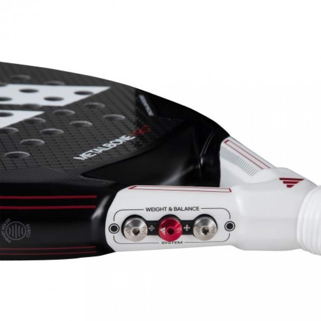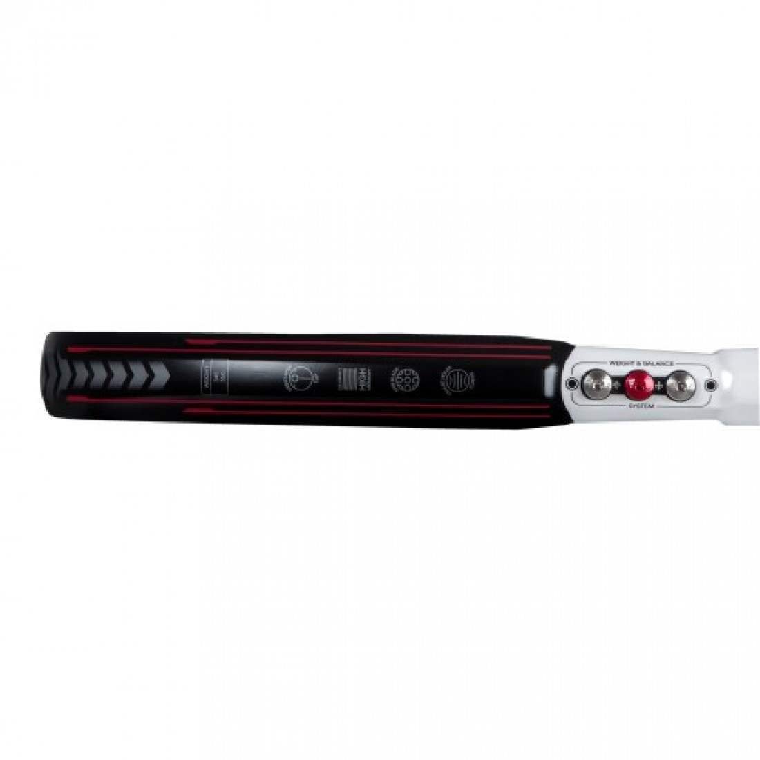 Su sistema de pesos extraibles ubicado en el cuello permite modificar el balance y el peso total de la pala para adaptar su comportamiento a las necesidades de cada partido.