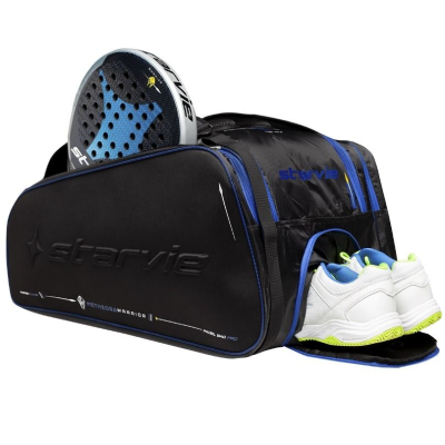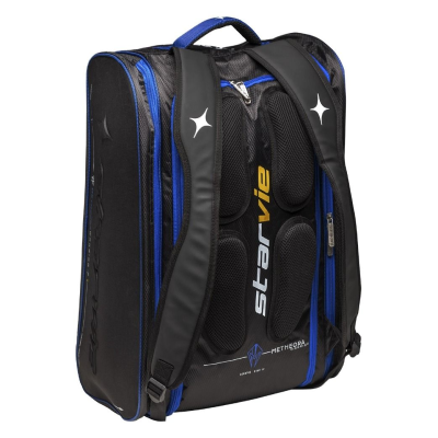 Diseño creado en combinación con la pala Metheora de la colección 2022, con detalles en blanco y azul. Como novedad, este paletero formato horizontal cuenta con la cremallera principal en la rte posterior donde se encuentra el refuerzo almohadillado de las asas. Se trata de un modelo de gran capacidad con diferentes bolsillos y con dos compartimientos laterales, uno de ellos con material térmico para proteger tu pala. Incluye un bolsillo exclusivo para el calzado individual y ventilado.