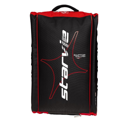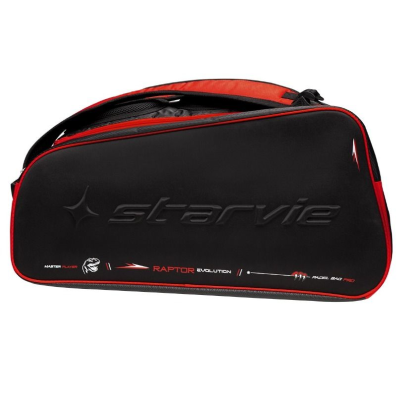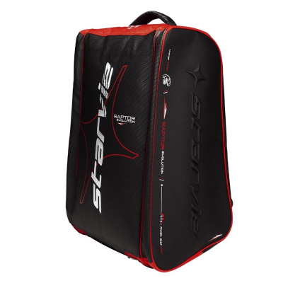 Paletero en color negro y rojo. Su diseño está basado en la pala Raptor 2022 de la nueva colección. Este modelo de paletero cuenta con gran capacidad para llevar todo tu material, ya que tiene dos bolsillos laterales, uno de ellos con material térmico para proteger la pala, un compartimento central y otro para el calzado independiente y ventilado. Como novedad, la cremallera principal de este paletero se encuentra en la parte posterior donde el sistema de almohadillado de las asas.