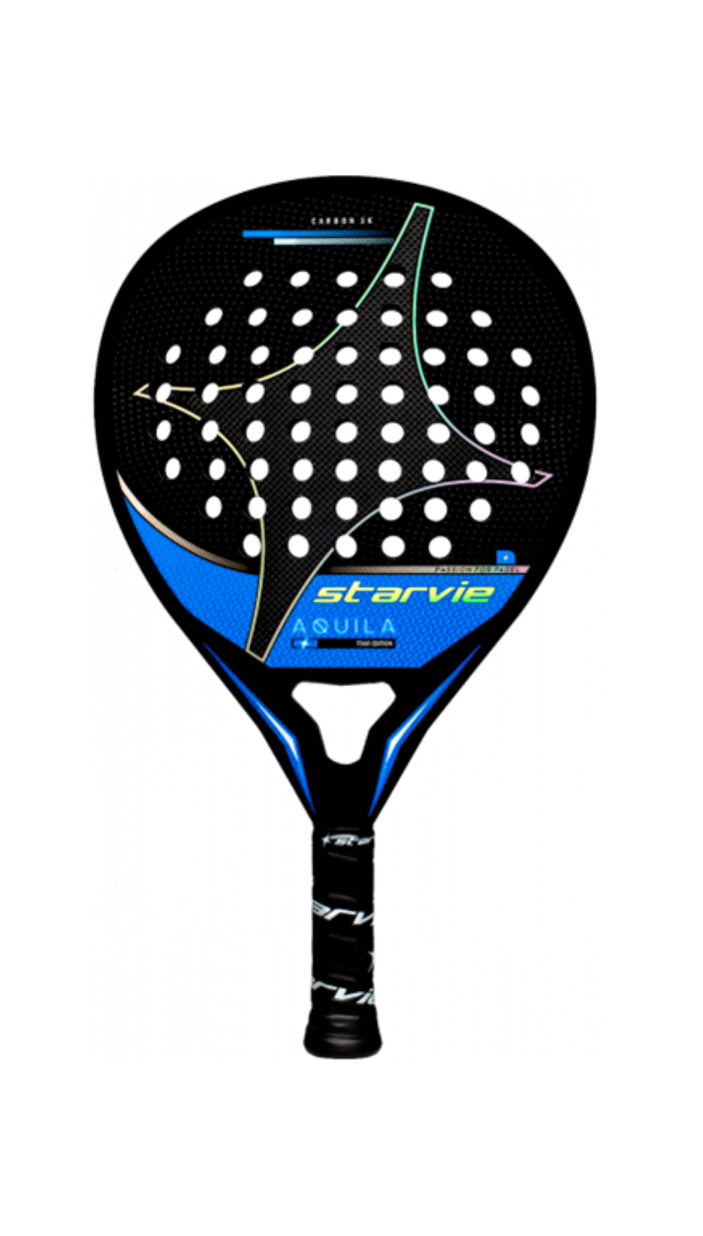 La nueva pala Starvie Aquila Tour Edition es una pala cómoda, con un equilibrio perfecto entre potencia, control y salida de bola. Además de contar con un diseños espectacular y exclusivo.