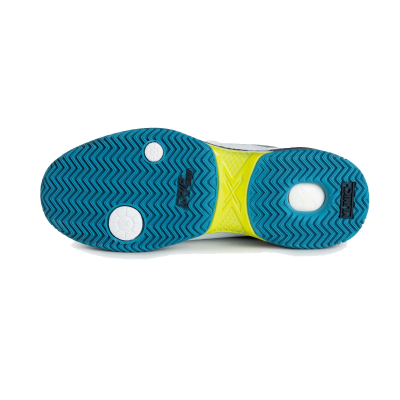 La tecnología X-Lite en la media suela, el insertoantishocky el refuerzo de TPU en el puente le aportan un extra de amortiguación y un extra de estabilidad en los movimientos laterales. La pisada con tecnología Grip Line, con patrones y texturas mixtas y gracias a una pequeña doble espiga, aumentan de manera óptima tanto el agarre como los ángulos de movilidad.